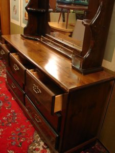 When I needed a job, I knew it would have to be in a restaurant. I had always wanted to be a waitress. Frankly, I’m not sure where I even got the idea since as a kid the places we ate out didn’t have servers. When Amber and I were younger and mom had moved her gargantuan Ethan Allen dresser (which looks like this:)