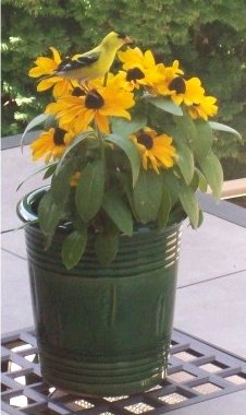We have these neighbors on our block who spend hours on the sidewalk with the necks craned, trying to see some bird. I don’t understand the obsession with birds. They freak me out. Once a bird got trapped in our house and I stayed outside all day. We’ve also had a bird in the garage and a bat in the dorm room. Any winged creature can stay very far away from me and we both will be happy. You have to admit you are a bit scared of anything that can fly. You have to be. They have a power we will never obtain. Anyway, this bird likes to torment these neighbors by staying away from his home. We came home from the walk (and the accompanying stop-and-chat with the birdwatching neighbors), and I kind of saw what all the fuss was about. There he was perched on the flowers atop our patio table. He was small and colorful and beautiful, and not menacing at all. I snapped this photo. If the neighbors knew about this, they would pitch a tent in our backyard.