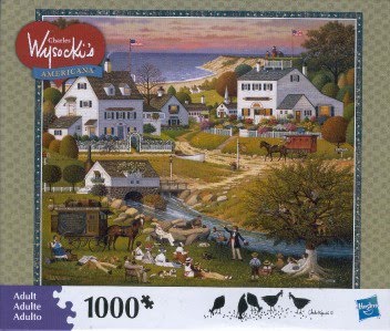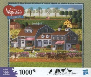 Pretty pumped that there is a new batch of 1000-piece Charles Wysocki puzzles out in local Target stores. I felt bad buying two, until my husband reminded me he would be spending $40 on booze. So while you are all out at your wild and crazy Friday night parties, I’ll be doing this: