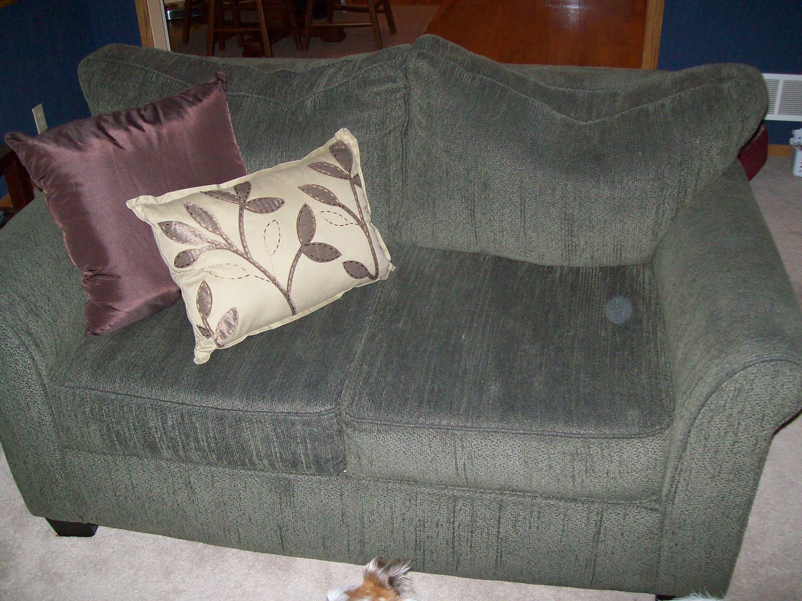 She also made me do something about those hideous toss pillows I had lying on the couches. I know, they’re disgusting. Oh, you don’t know? Here – here’s the carnage: