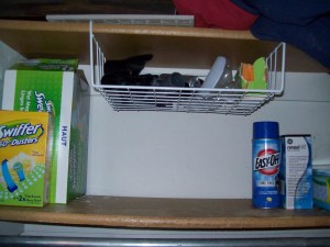 I’m going through an organizing phase right now. What’s better than a basket shelf that hangs from a shelf? I need to get one of these for every closet in our house. $3 at Big Lots.