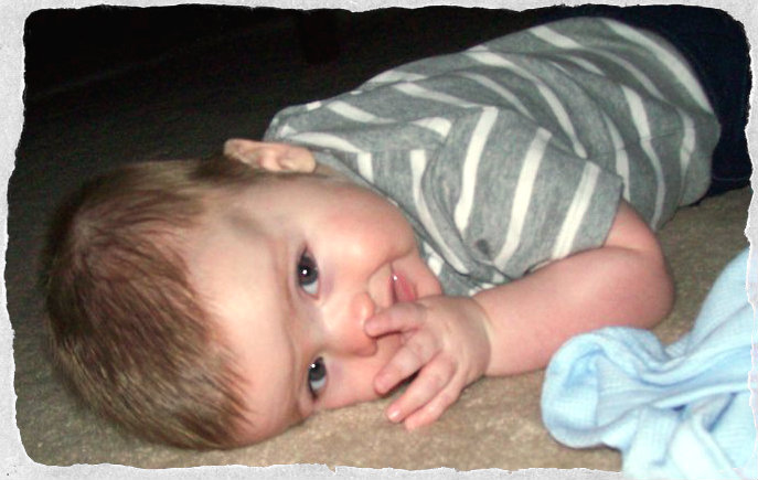 Too much exercising tires him out. He takes after his mama. When a pacifier is not around, he sucks on a finger or two, or sometimes his whole fist.