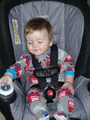 on his throne Look who’s graduated into a big boy car seat! He loves the cup holders. Leave a comment Cancel reply Δ