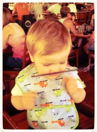 There are good times, of course, too. I’m just so cranky that I don’t realize they were good until they’re over. So now that I’m back home I can look through my pictures and smile. Brandon loved that duck he saw at the 4th of July parade. He watched Baby Einstein on the portable DVD player with dad at the hotel. He got to see four of his cousins. He learned from dad how to make a long mustache with a straw. Like I said before, parenting is a joy (sometimes).