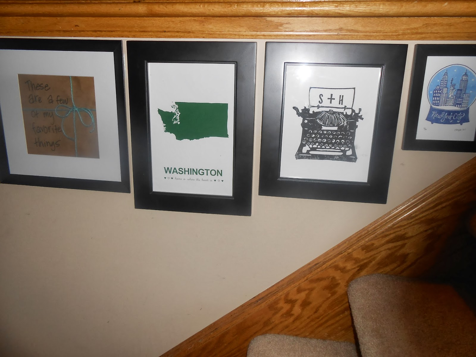 I have also been working on other things. There is this little triangle of a wall on the walk up the stairs before the banister starts. I am filling it up with letterpress prints I found on Etsy. Have I ever mentioned how much I love letterpress prints or Etsy? One day I am going to get my own letterpress.