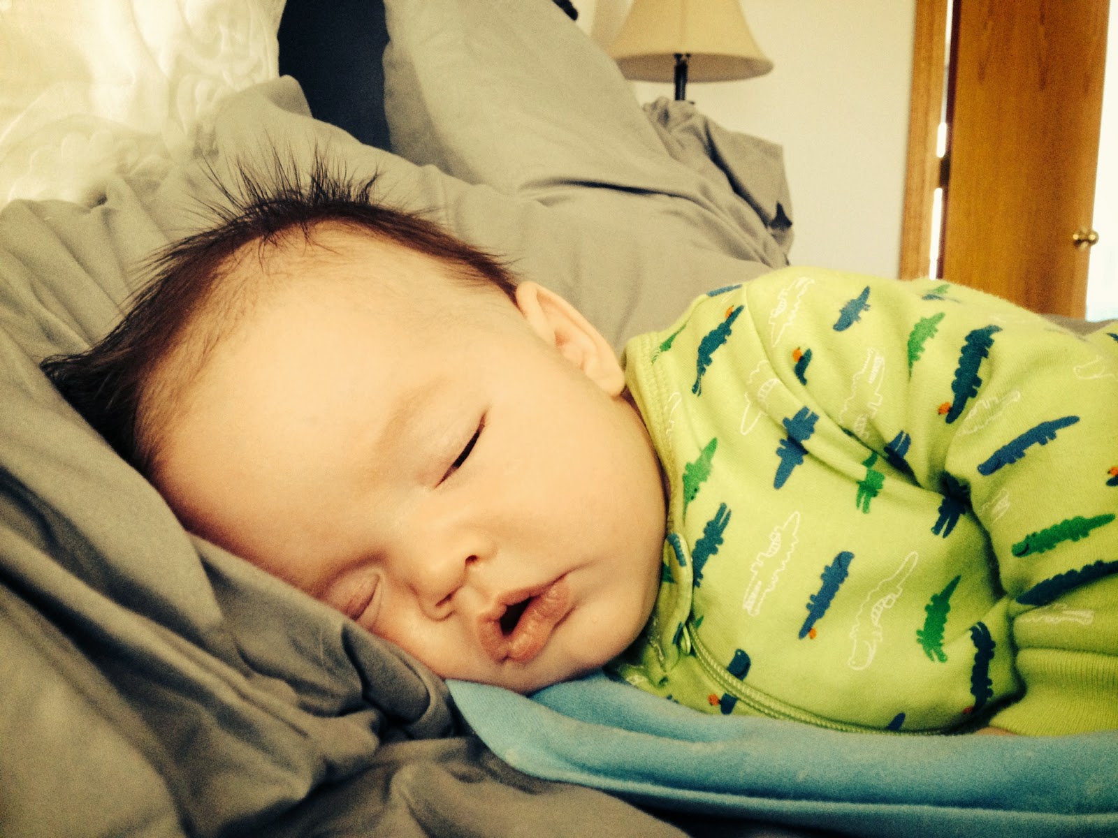 But then Steve said he remembered his old boss telling him that they thought their child had colic, but it turned out they just weren’t feeding him enough. Holden has been drinking 4 ounces at a time every three hours for some weeks now. I haven’t increased his amount yet, because he’s drinking two and a half times his weight as they say kids are supposed to. But parenting can’t be boiled down to following rules. It’s really not that exact of a science. So last night we fed him his four ounce bottle. When he kept crying afterwards, we fed him a two ounce bottle. And then another two ounce bottle. And a miracle happened: he stopped crying. Not only that – he also slept for six straight hours. I kept waking up to make sure he was still breathing. It was my best night of sleep yet. And today – he isn’t acting colicky at all. I’m hoping this is the return of my little angel.