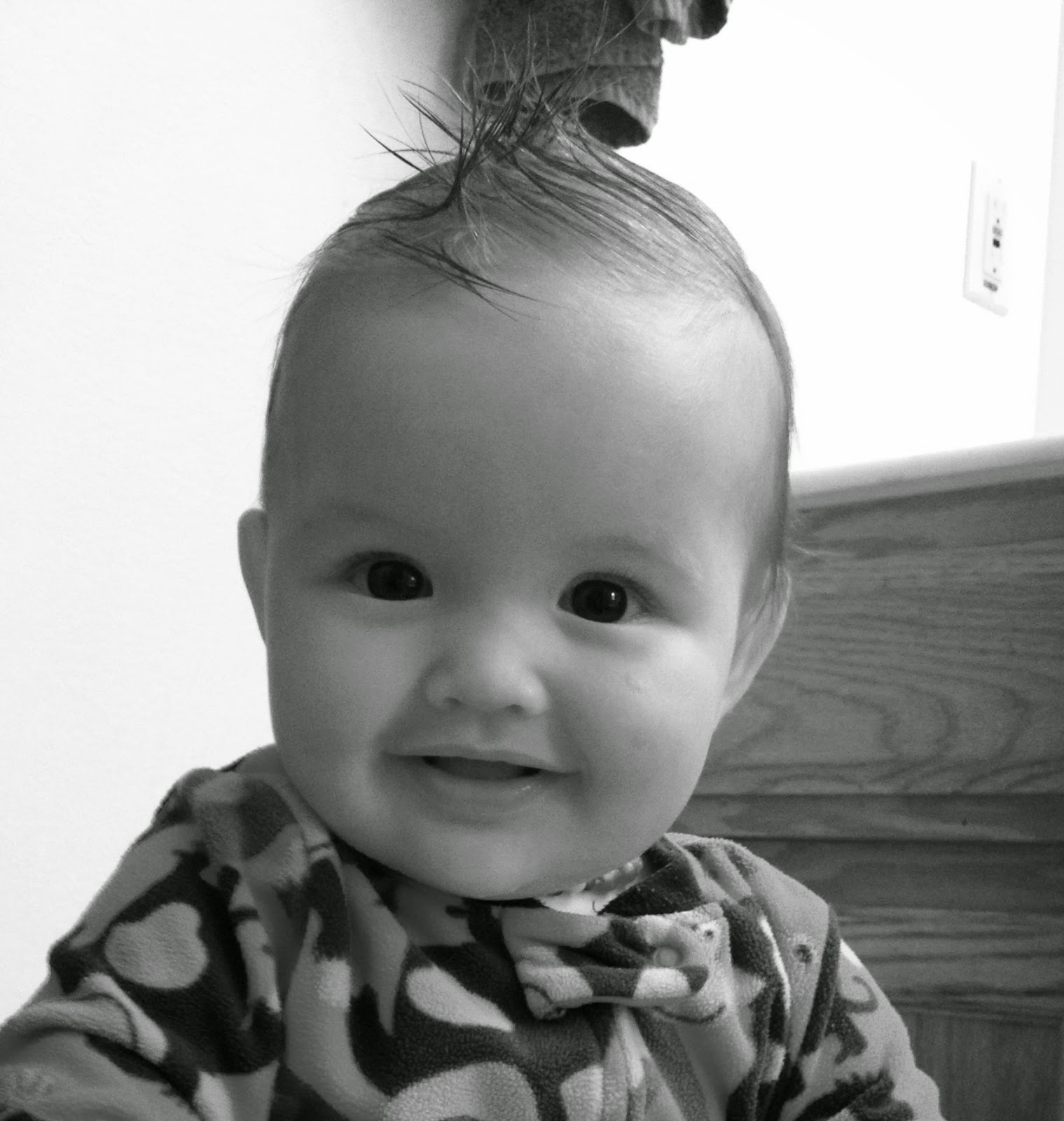 Yes, there is a dingy towel in the background. But instead, just focus on this sweet face. He is the age of smiles and coos and squeals. And of course, their counterparts. But the good certainly outweighs the crabby.