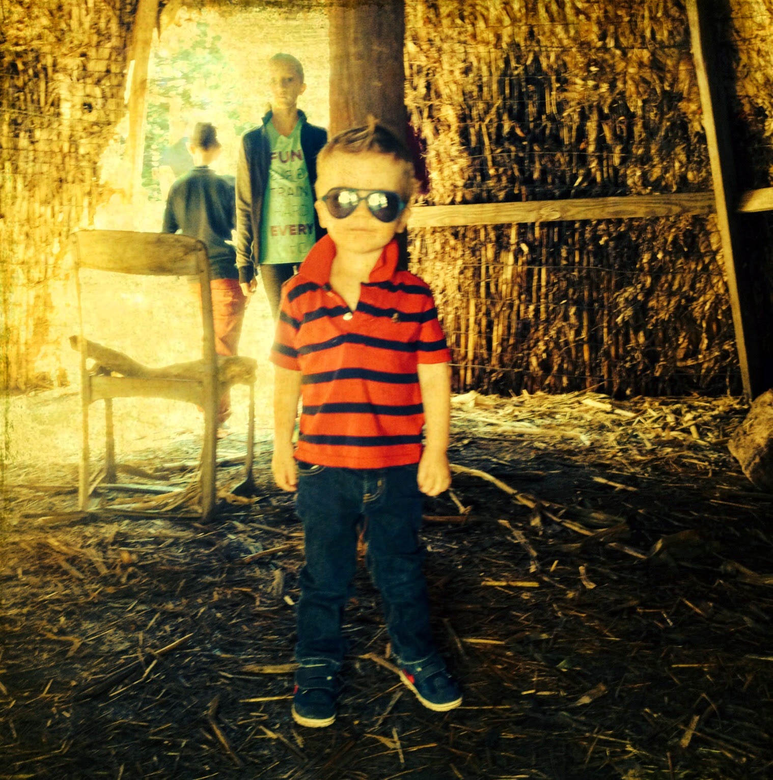 Brandon was most interested in the bunnies and this tepee made of corn.