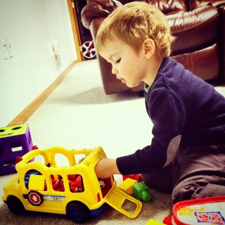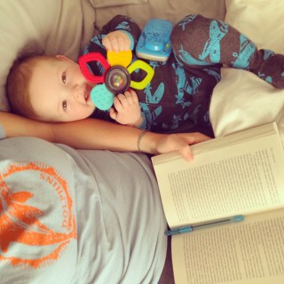 He hasn’t been sleeping as well and is always gnawing on something. It looks like that other front top tooth popped through today. Holden and I have been spending a lot of time together in the mornings, so he is forced to hang out while mommy reads or brushes her teeth. He doesn’t seem to mind much, as long as he something to chew.