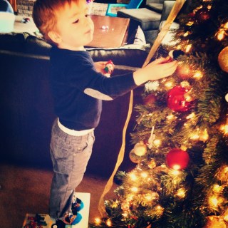 I love the day when we put out the Christmas decorations. Brandon came downstairs and said, “it’s Christmas, mama!” Then he pulled his step stool up to the tree and rearranged the ornaments.
