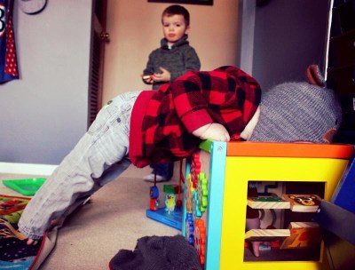This teddy bear was mine when I was little. I love to see it getting love again.