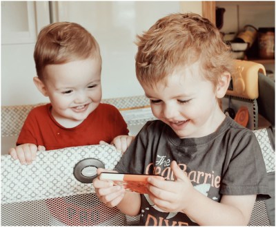 One more: I can’t help it. This should be an iPhone print ad. Apple can photoshop the stains out of their shirts. Yes Apple, I am giving you permission to this photo as long as you write us a handsome check. Enough to cover college for the two of them at Ivy League establishments of their choosing should do the trick.