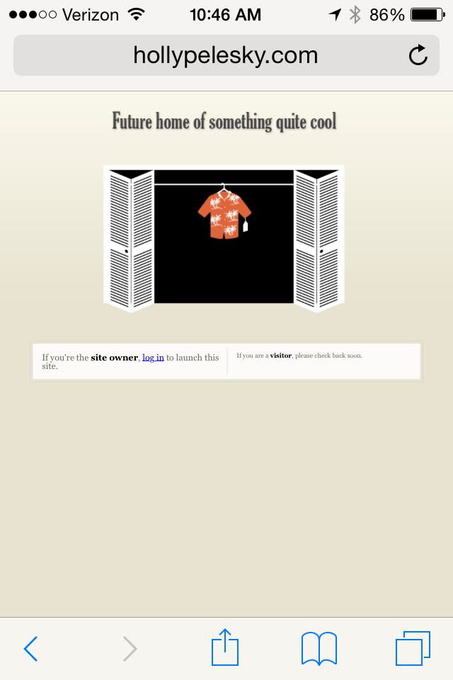 Sure, it’s just a stock photo for pages that have been purchased but not created, but even still, I got excited at just this. Just my web address with a Hawaiian shirt in a graphic closet and the words that this web address will one day be something quite cool. I better live up to the hype. Better church it up a bit, make it fancy and interesting. I’ll get to work on that. Or better yet, get my friend who is much more brilliant to work on it. Something quite cool; yes, I like that quite a bit.