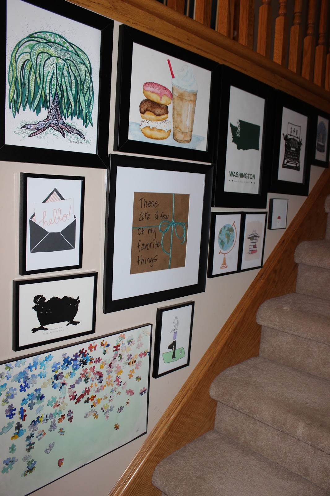 my favorites wall would be so much the same… take out washington (i've never been), i don't have a ny snow globe, and lord knows the shape of this body can't contort into many yoga poses. add diet coke, french fries, tire swings, the mountains, a stack of cozy blankets, and like stephen – a whole lot of dvd's.