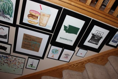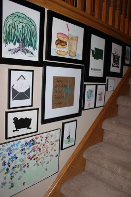 I have sent messages to Etsy shop owners asking for customizations, made a few trips to Michael’s, and even had an artist make the donut & coffee and the puzzle pieces paintings just for me. Maybe next I will make Steve a wall of his favorite things. That would include a football, a highball glass full of ice and whiskey, a guitar or headphones, a full DVD stack next to a TV, a newspaper. Brandon’s would be instruments and animals, books and a pool. Holden’s would be balls and cookies with milk. He is a more athletic Santa, basically.