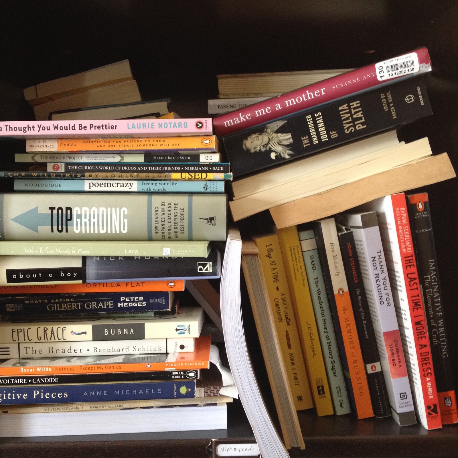 (Clearly not all the books I read are pictured. Many were library books or not worth looking for in this mess of books I have here).