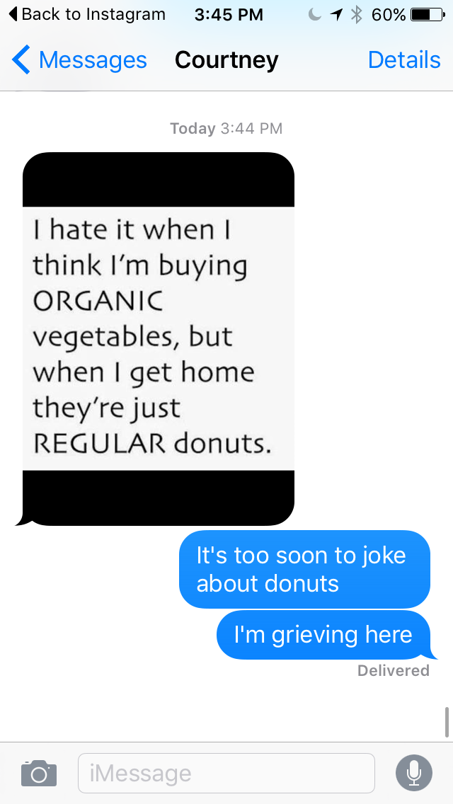 I texted Steve about how awful I’m feeling and he told me just to have a coffee. So I brewed a tiny cup of coffee, but I haven’t drank it yet. It is sitting there in the brew pot, taunting me. Do I cave just on the caffeine real quick – get a quick nip so I can wean off gradually rather than cold turkey? Or do I power through? I mean, the coffee won’t be that good, since obviously I can’t add cream. And maybe it will actually make me puke since I’m feeling pretty nauseous right now.