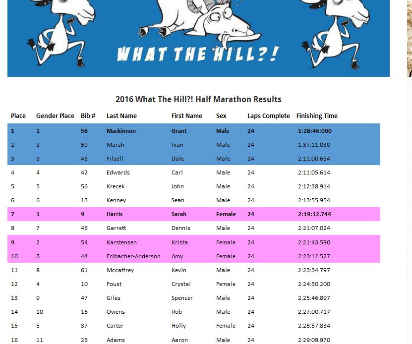 I started the race appalled that everyone was walking a tenth of a mile into the race. The hill was big, yes. It was waging war on my quads, no doubt. But I thought this was a run, not a walk. So I ran it. The first lap, then the second. On my third lap, I noticed maybe everyone was walking up the hill because your pace walking and running it isn’t that much different.