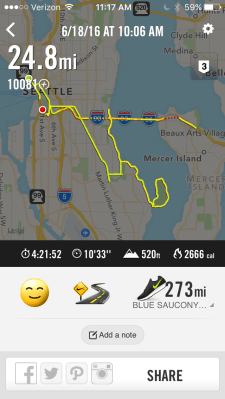 Luckily, at this point, the route became scenic. Instead of running through rundown Seattle streets, we were running next to Lake Washington. I admired the beautiful houses. We ran through Seward Park, which is basically a forest peninsula on Lake Washington. A slight drizzle started. It was picturesque. The pace was still pretty good: for the first 14 miles, mine and Chad’s pace was never over 10 minutes/mile. I was proud. I was hauling ass.