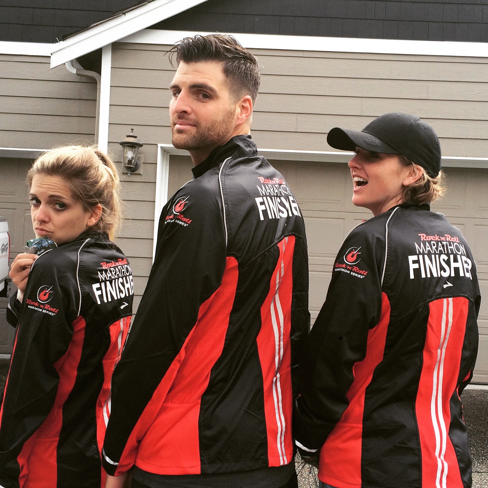 We had lost Amber in the first couple miles, while we were zigging and zagging through people. But sure enough, she crossed the finish line, too. We had all done it. Bitching, injured, under-prepared and everything. We had finished. A half of 1% of people complete a marathon. We are in that tiny sliver of the population.
