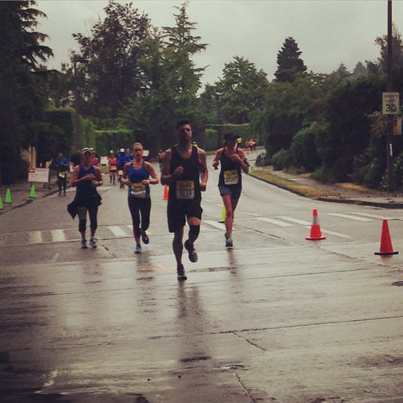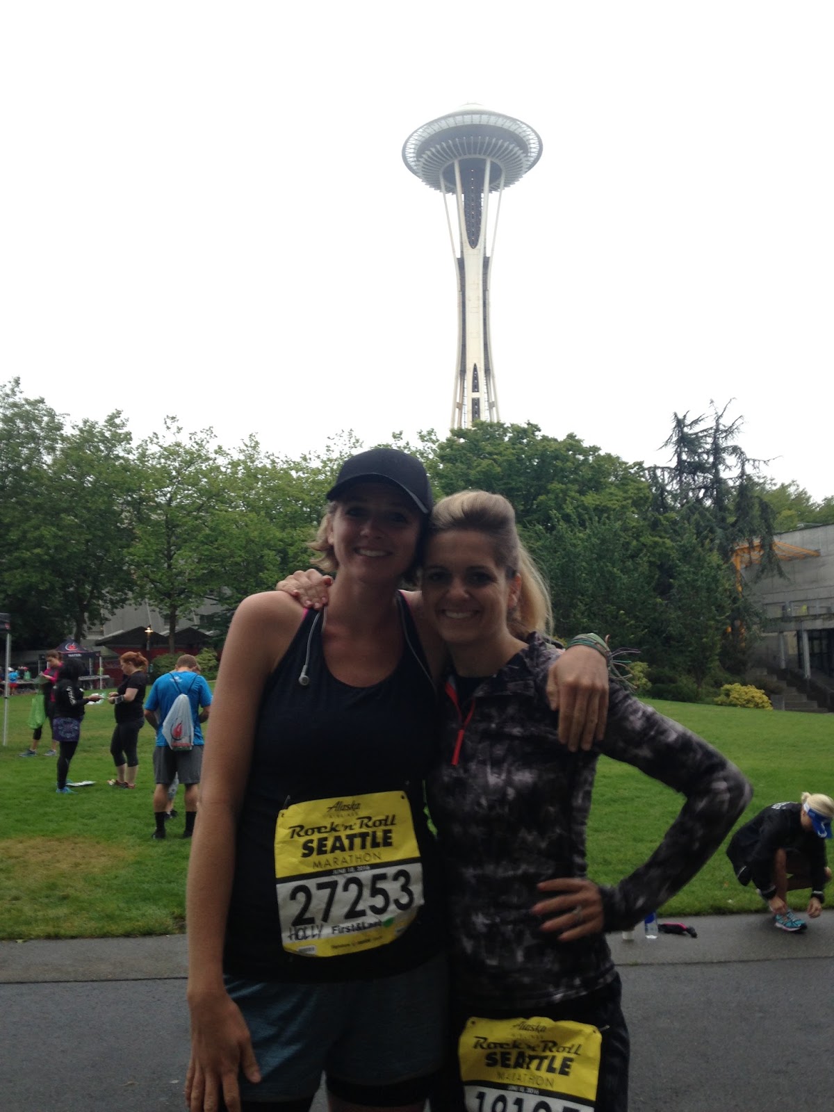 So there is the background. On to Saturday. It was an overcast day with a chance of rain showers. That is pretty much always the forecast in Seattle, which makes it the perfect place to run a marathon. I had left 104 degrees and found myself shivering once I stepped foot outside the SeaTac airport. I had brought shorts and a tank top, because that’s all I’ve worn for the past three months here in Nebraska. It was a bit cold before the race. My arms were definitely enlisted to cover my nipples.