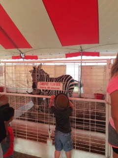 We checked out the petting zoo, which was so much more than I expected. They had animals I don’t ever remember seeing before: a kangaroo and a zebra. Then we left, having done everything we wanted to except the Ferris wheel (I didn’t tell the boys that it is the only ride I am scared of – they think we just ran out of time).