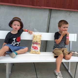 We didn’t have to wait at any rides, we just hopped on and the carnies let the rides go long when no one was waiting. The boys tried out everything, some rides twice. When we went to get more water, the boys saw the carnival games on the way. This seems like something I would deny usually, but what the hell? I had cash in my pocket from the withdrawal for the water. So I paid for three darts and began showing Brandon how to hold one. While I was attending to him, Holden picked up a dart and just let it fly. I have no idea how he knew how to throw it. Holden popped a balloon and Brandon popped two. They each got a stuffed animal. They hugged them close all evening, so proud of this first thing they earned themselves.