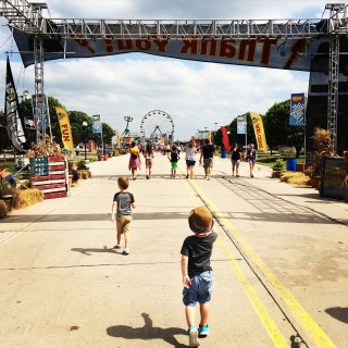 So we got dressed and I packed lunches and away we went. I forgot to bring the iPad and some other road trip games and toys to entertain the kids, but it was just fine. They were angelic. We sang animal songs and talked about our favorite fair things and stopped for gas and stopped at a rest stop.