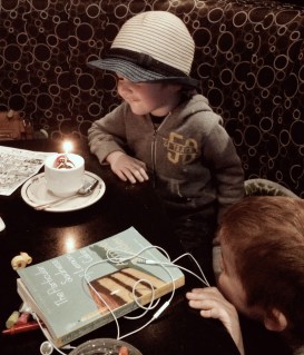 You hang out with the older kids: you think you’re Brandon’s age. But you occasionally poop on the floor to remind us of how young you actually are. You always want to swing. Or shovel dirt and toss it into the air and watch it scatter. You like Calico Critters and babies. If we go to a restaurant, you mix fruit or pepper into my water glass to make me soup. You’re tough as nails but soft as your train blankie. You don’t care much for tv but you love the iPad. You sing aloud anywhere, unashamed.