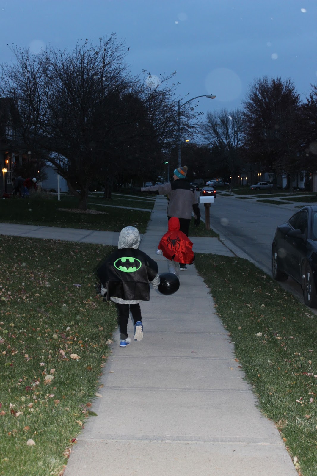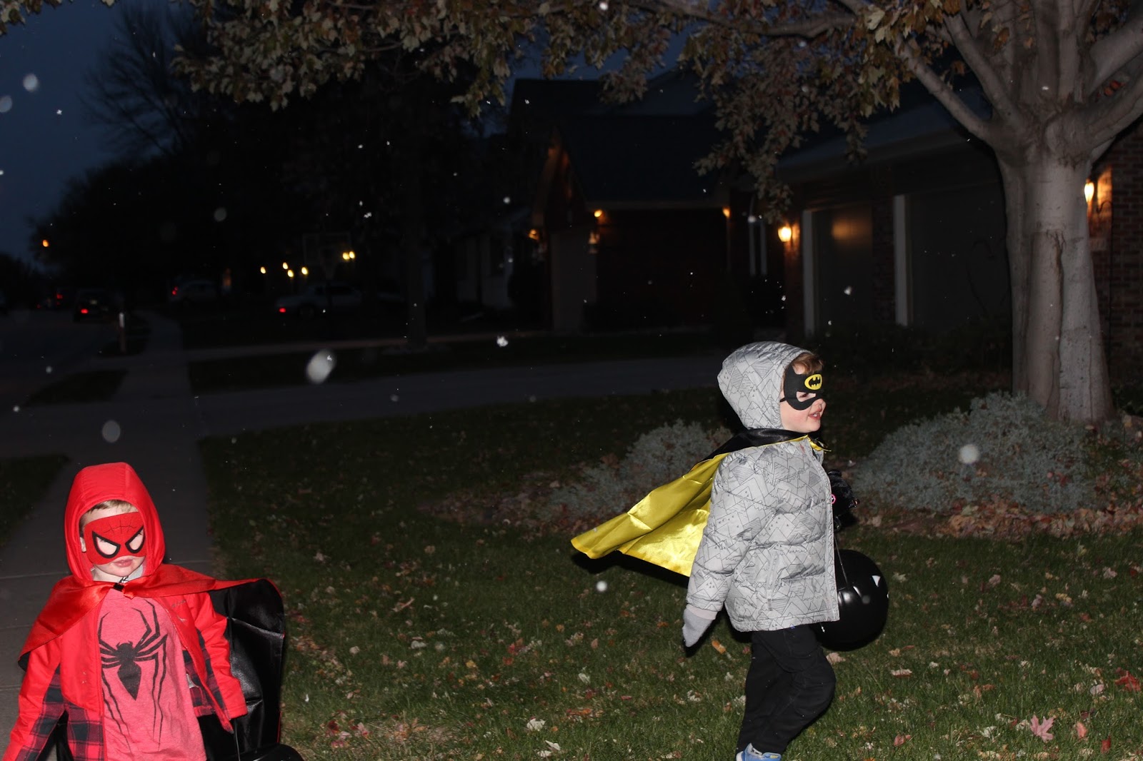 But this was the first year it snowed. Just light snowflakes that didn’t stick to much, but snow nonetheless. I looked up into the streetlights and watched them fall as the kids ran from house to house, shivering in the snow, collecting candy.