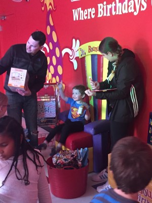 Back home, the boys had a Nebraska party at BounceU.
